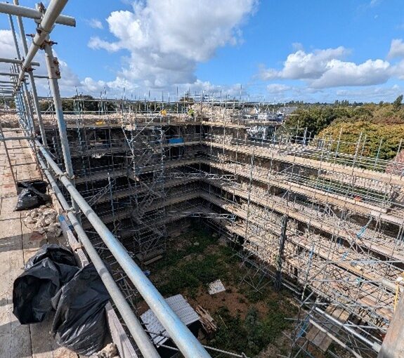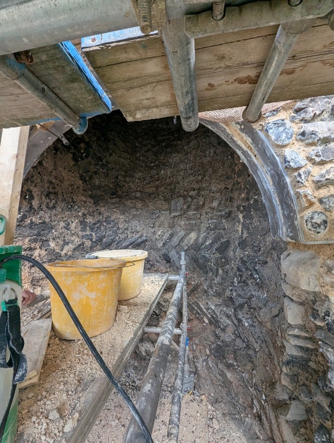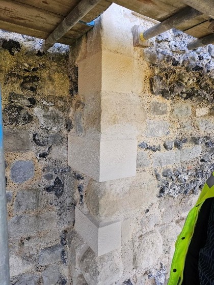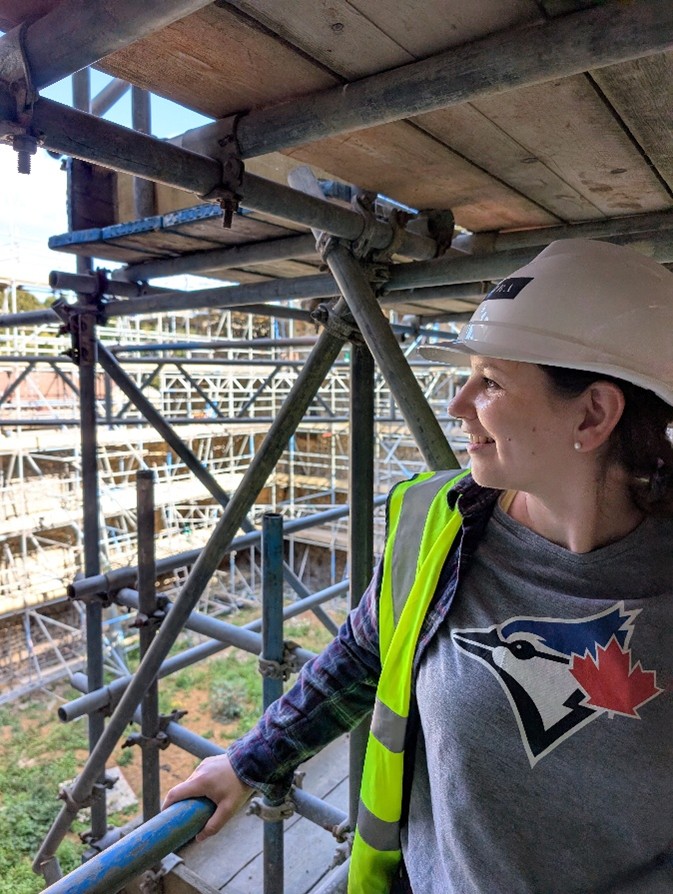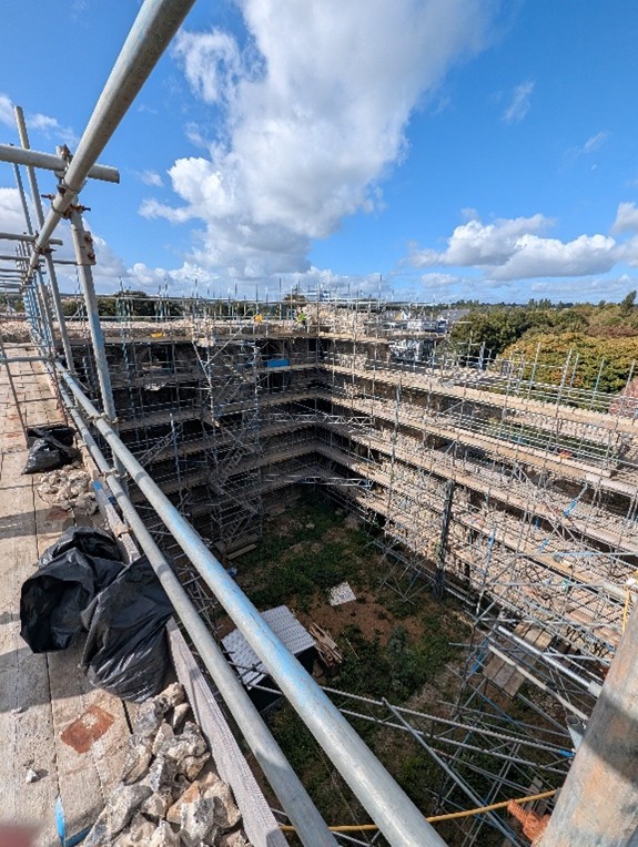 Recently, we were able to visit Canterbury Castle, courtesy of Lian Harter from Purcell and Alison Hargreaves from Canterbury City Council. Dr Katie McGown and Cat donned high vis, hard hats, and steelies to climb the scaffolding. This visit allowed them to think about sight lines around the city, but also observe important details such as this stunning herringbone brickwork in the fireplace. The tour also gave us incredible insight into the refurbishment of the keep, and how that process might be incorporated into the eventual curriculum resource that accompanies the project.