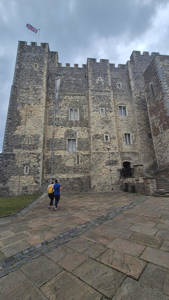 As we continued to develop the digital reconstruction, questions began to emerge about the structure of the outer staircase and how this would look. This is a difficult question to answer given that the structure no longer exists. However, the team were able to develop a better understanding of how the space might have worked by comparing their observations in Rochester with a visit to Dover Castle. Professor Alan Meades, Dr Cat Cooper, Mike, Joseph and Ethan went down to Dover and spent time discussing the differences between the three Royal Norman castles in Kent, and documenting features like the staircase. Dover Castle also gave the team the opportunity to appreciate the lovely Norman interiors.