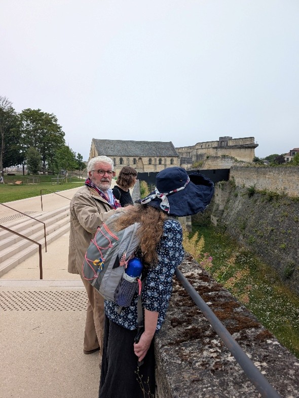 We’ve also been thinking more broadly about how the project might fit into wider activities in development for the 2027 European Year of the Normans. Professor Leonie Hicks, Cat and Katie travelled to Caen Castle to see about possible collaborations for work at the site, and were delighted to have a detailed tour led by Curator Jean-Marie Levesque around the delicate foundations of Caen Castle’s Norman keep. The team also took the opportunity to see the Bayeux Tapestry prior to its voyage to the British Museum.